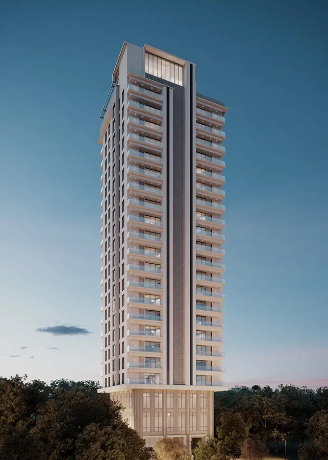 Iniciamos con la coordinación y construcción del departamento muestra. Actualmente, estamos instalando la fachada exterior en el nivel 9 y de forma simultánea, trabajamos en tres niveles con la instalación de sistemas eléctricos, hidráulicos y de ingeniería. Comenzamos también con la construcción de los muros interiores de los departamentos.